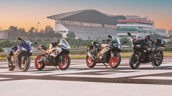 But, more than that, we prefer to evaluate these machines on the shorter – and more technical – 2.0-km loop at the back of the circuit. Plus, this avoids the front straight and the 1.2-km back-straight. If we included those, the more powerful cars and bikes would simply have too much of an advantage. More than outright power, we want to test chassis balance and composure at the limit. A track map points out the section of track that we utilise – the red line depicts the loop for the four-wheel vehicles, while the blue depicts the two-wheel loop, the main difference being that the bikes and scooters use the inside / bike loop of the parabolica at turns 10, 11 and 12.
